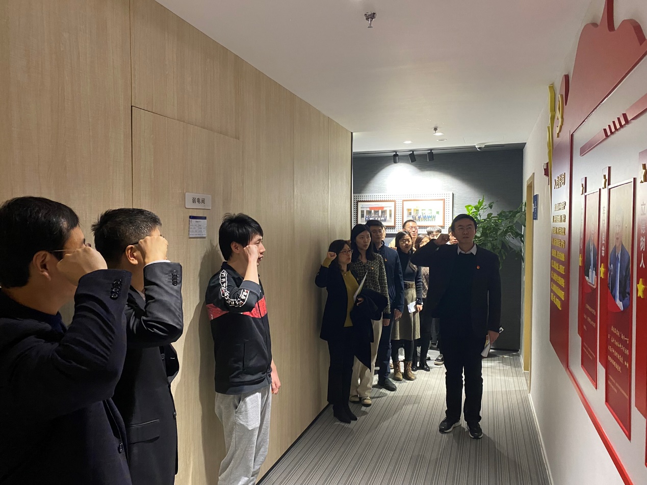 最后,党支部举行刘亦石同志入党宣誓仪式。全体党员同志在太阳集团tyc33455官网党建墙下宣誓。宣誓完毕后,刘树春副校长为刘亦石同志佩戴党员徽章。
