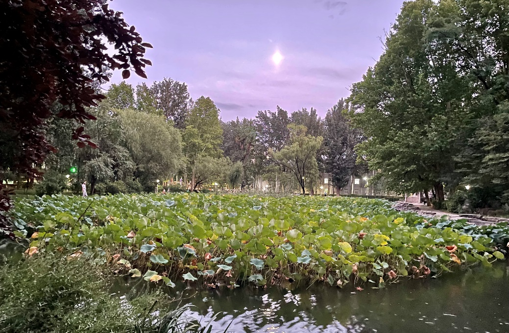 配文:在黄昏的映照下,新北区像是镀了一层金箔,闪闪发光;同时气势磅礴的新北区绵延向远方,像是阳光下的母亲河黄河,生机勃勃、绵延不绝流向远方。