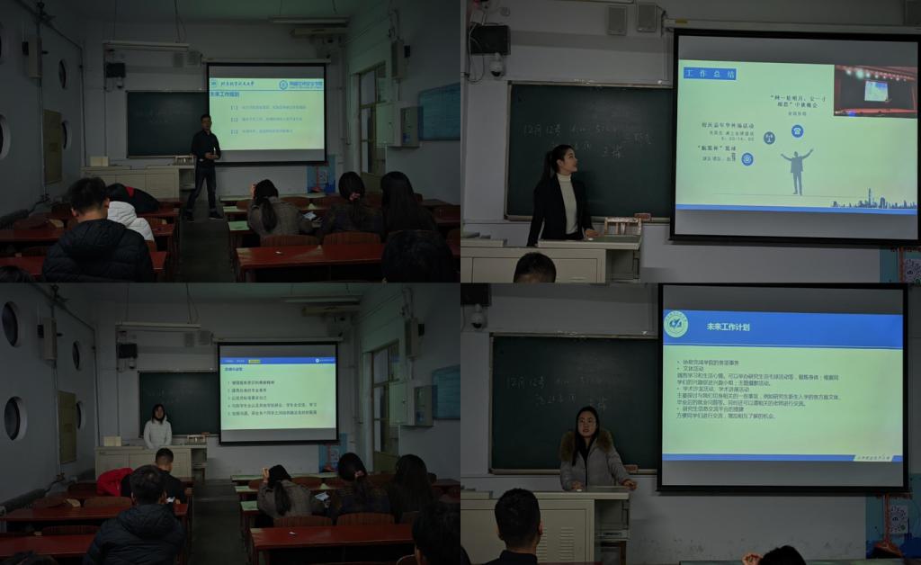 2020年12月12日下午四时许,太阳集团tyc33455官网研究生会年终总结暨轮值选举大会在四号楼准时召开,作为本学期研会的最后一次会议,研会成员们也按时参加。会议由现任研会主席团成员陈春林主持召开,陈春林同学就本学期的工作事宜做了相应总结。最后由大会民主选举产生下届轮值主席。