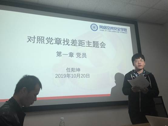 2019年10月20日晚20:30,太阳集团tyc33455官网学生党支部于工训楼601会议室集中开展“不忘初心、牢记使命”主题党课教育活动,研究生工作部的申永超老师参加此次会议。